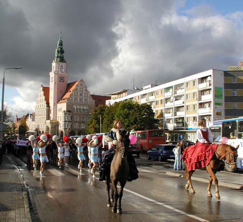 wyruszyli w pochodzie prowadzonym przez "amazonki" na koniach, chirliderki i orkiestrę z Iławy